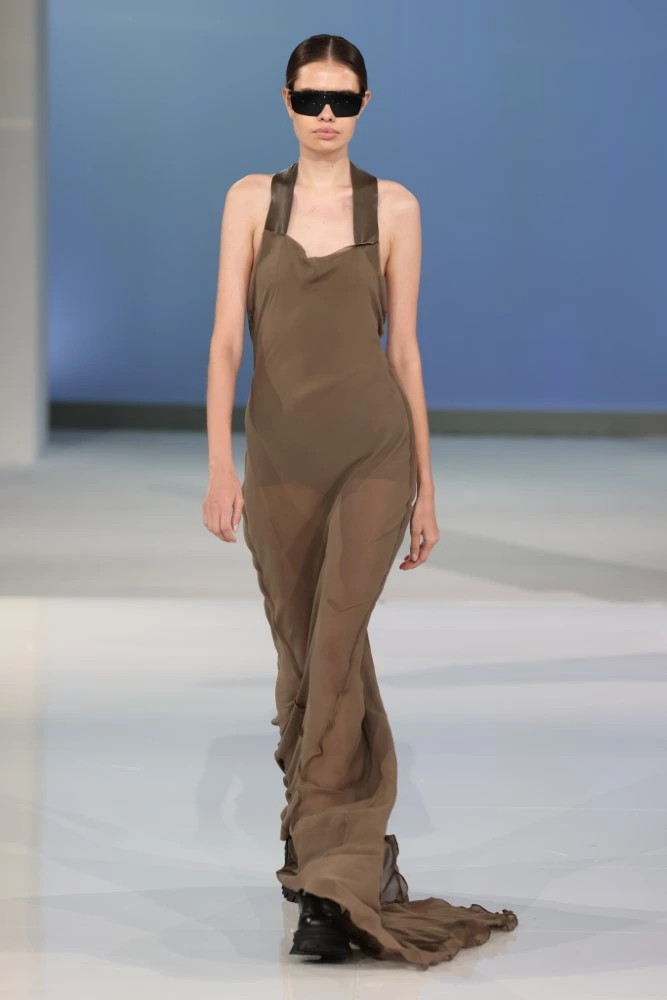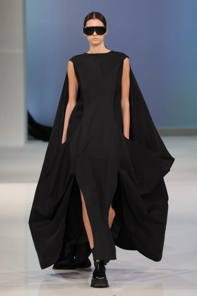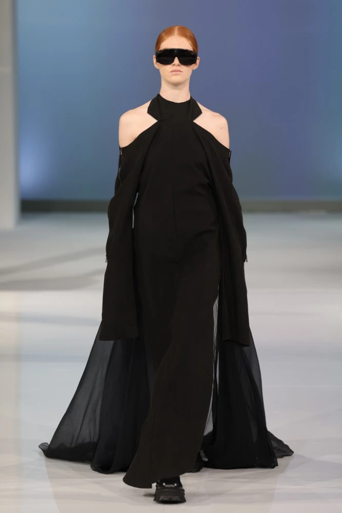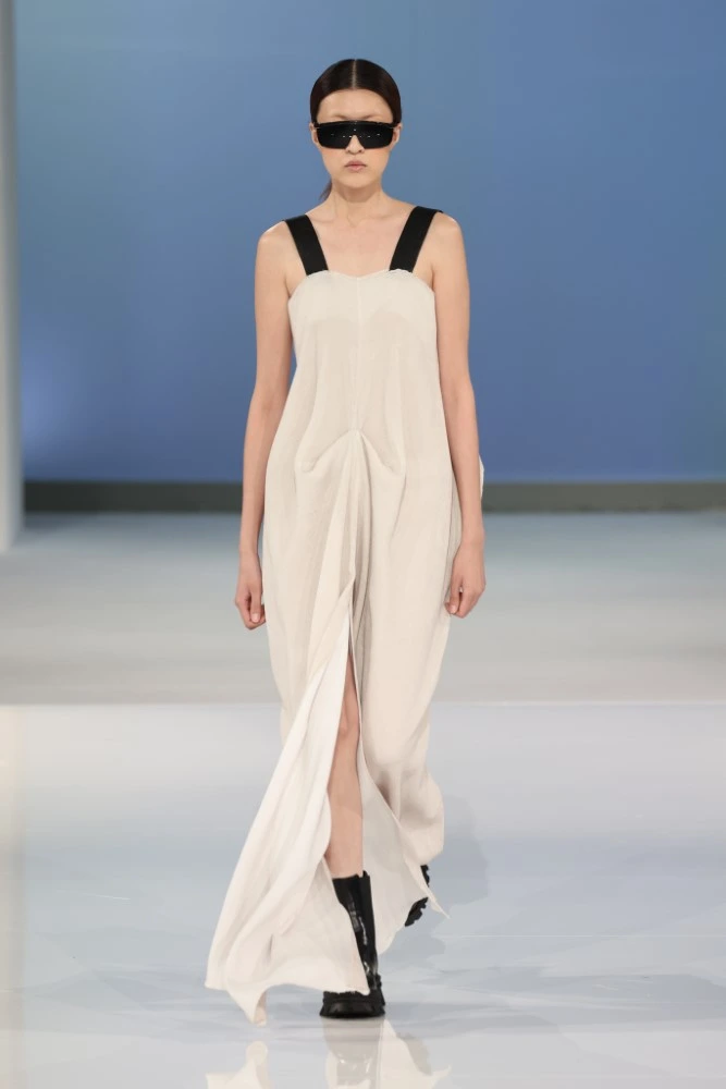 Dresses that combine lightness and structure, create a universe in which the strong feminine manifests a contemporary world. Structured models, precise cuts combined with a choice of classic and non-classic fabrics, developed in a color palette that emphasize the dualism between nature and technology – colors that range from forest green to olive, stone, charcoal and black.
