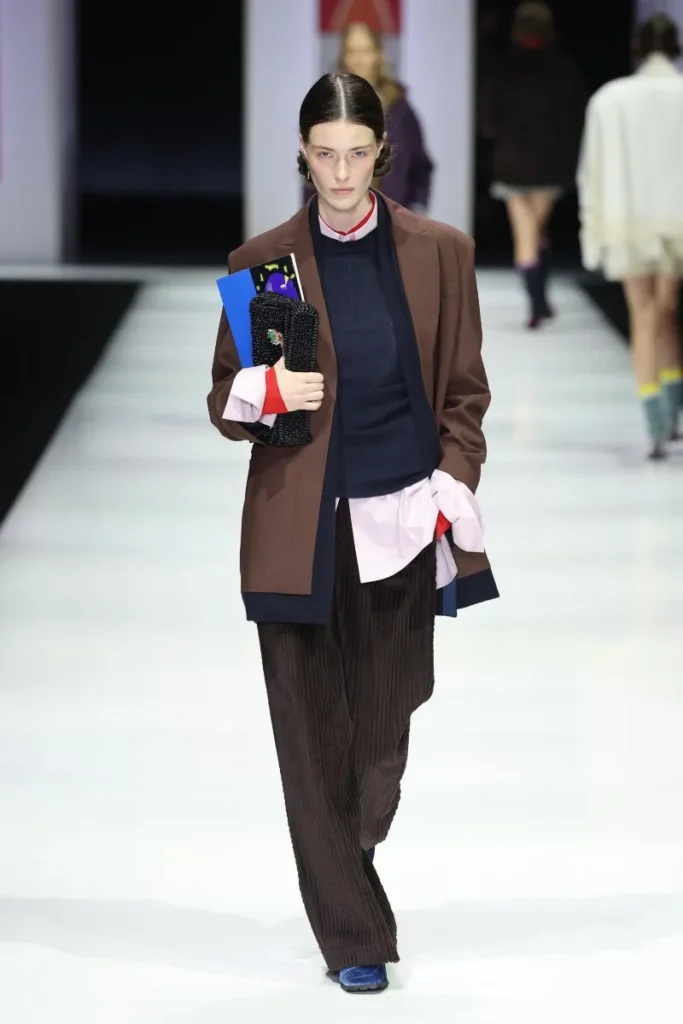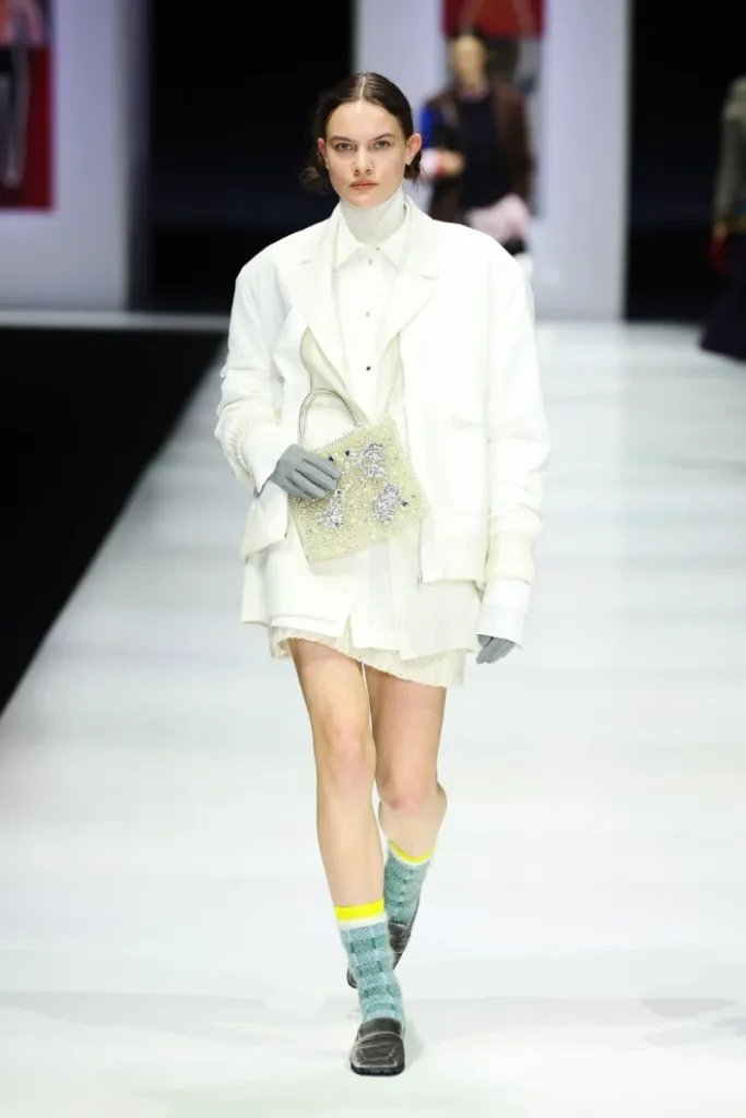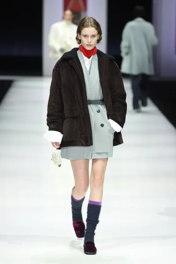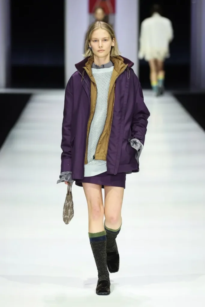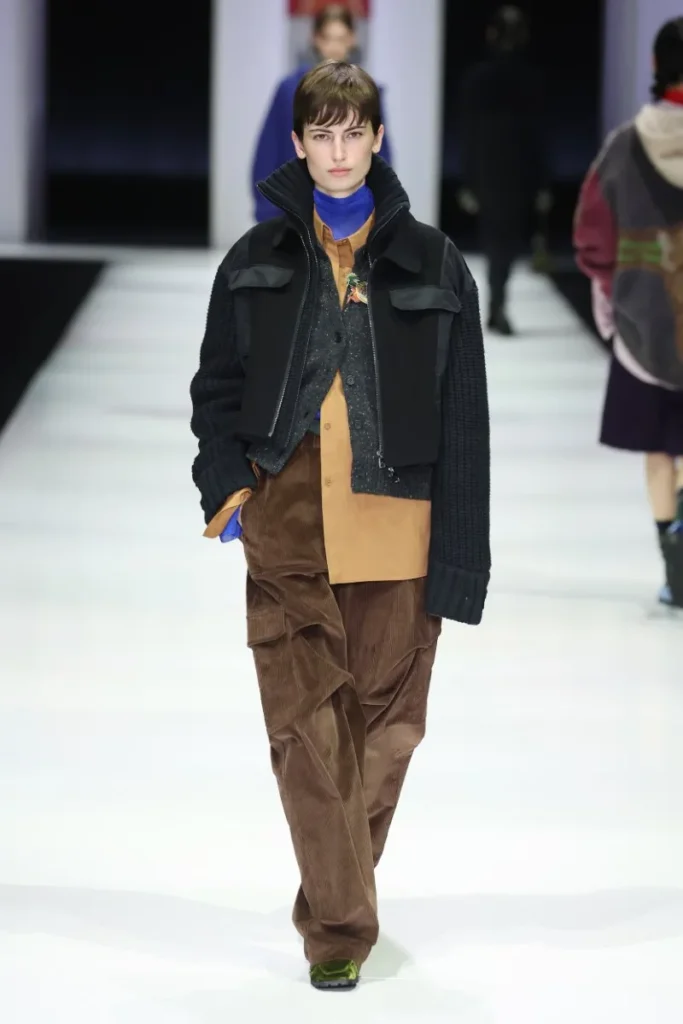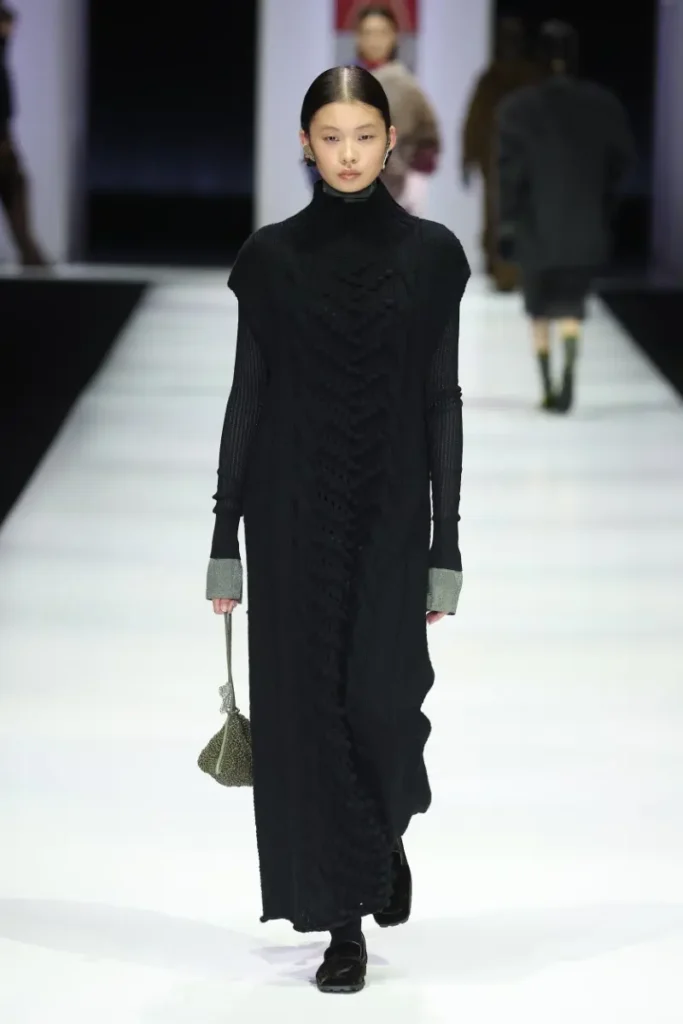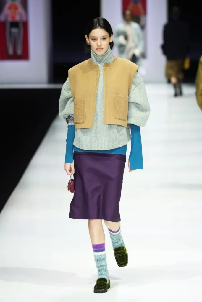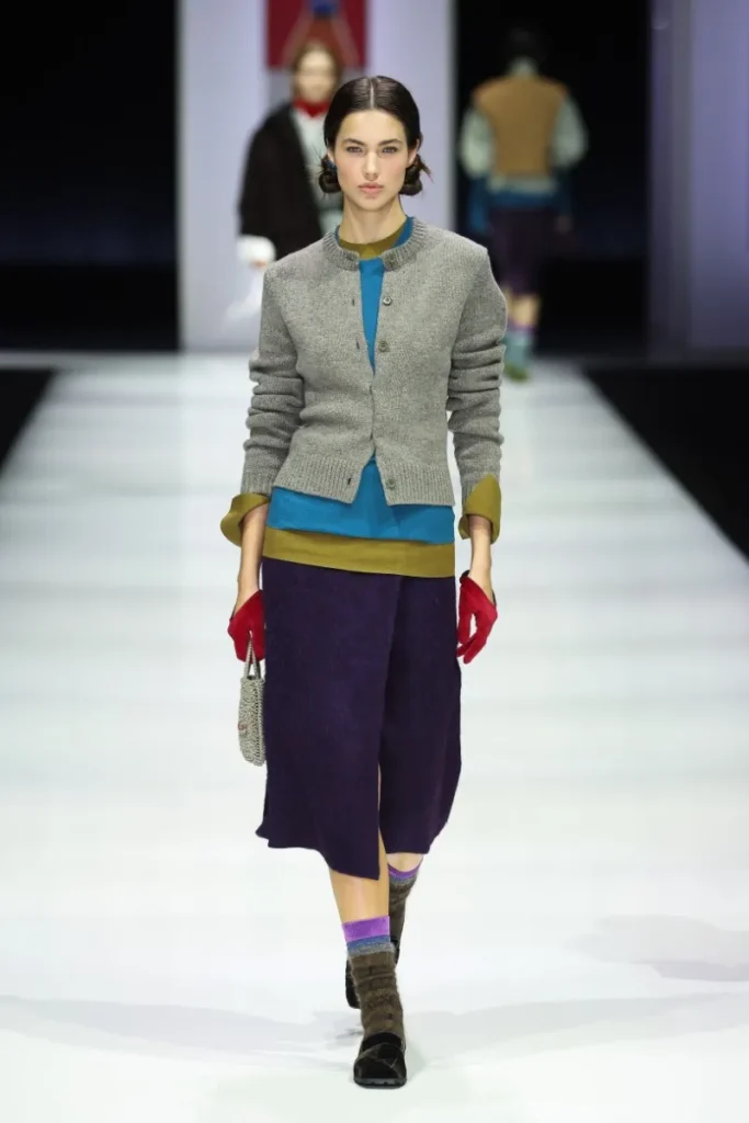 Texture takes center stage this season: cashmere, velvet, mohair, and winter mesh merge to offer a unique sensory experience. Innovative materials like fleece, nylon, and bouclé contribute to an aesthetic that invites living every garment as a work of art, meant to be touched and experienced.