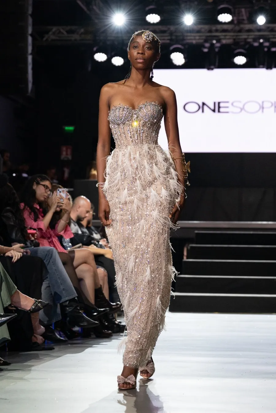 From Colombia, Laura Escobar brought her luxury brand Lediel to Milan—already featured in Vogue and previously shown at Paris Fashion Week. The runway also featured ONESOPHIE from Milan, with every piece hand-embroidered by Italian artisans, and Par.Lune from South Korea, blending oriental atmospheres into genderless garments.