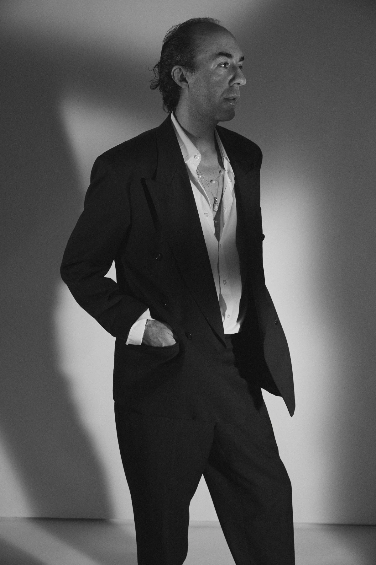 The light becomes a structural element, flowing through sculptural garments in black and white crystal, supported by architectural corsetry with conical cups, an expression of a femininity that is strong, essential, and controlled.