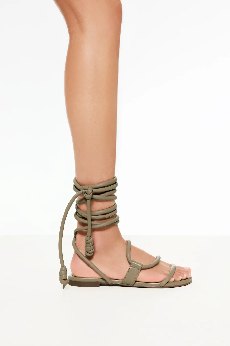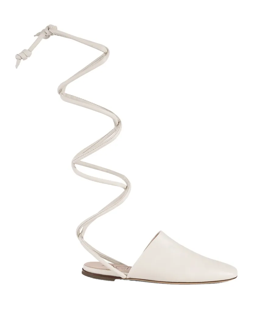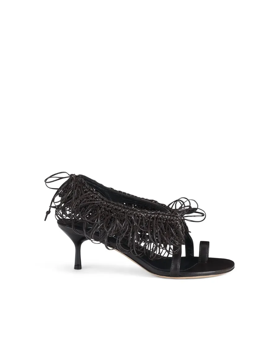 Crochet, Knots, Tubular Designs: Contemporary craftsmanship meets heritage. Natural tones in crocheted leather fringes, braided leather, and artisanal knots celebrate the art of weaving, transforming it into a defining aesthetic of the collection. Ancient techniques are reinterpreted for a modern vision: artistic crochet, pulled threads for a “puff” effect, wild yet couture, applied to flat sandals, mules, and 6 cm heeled sandals.