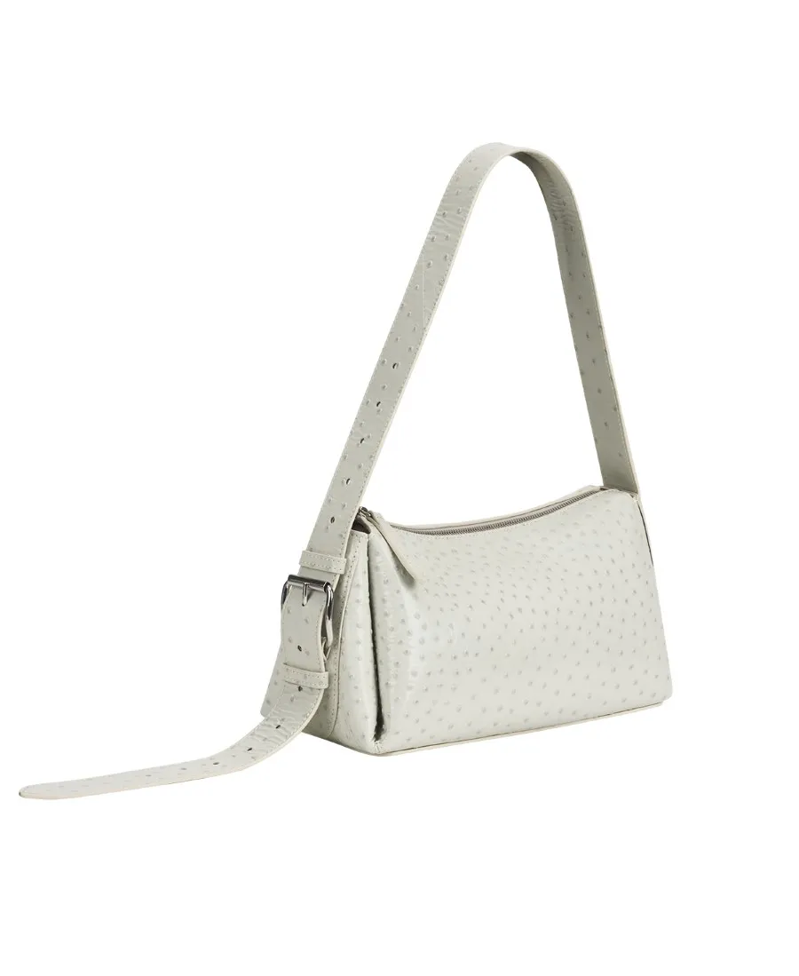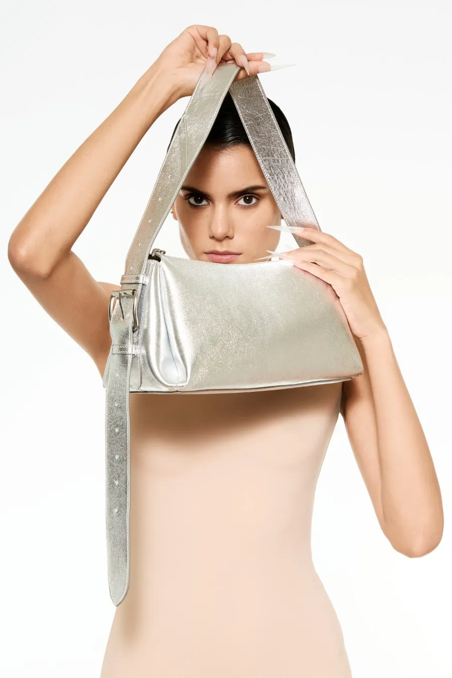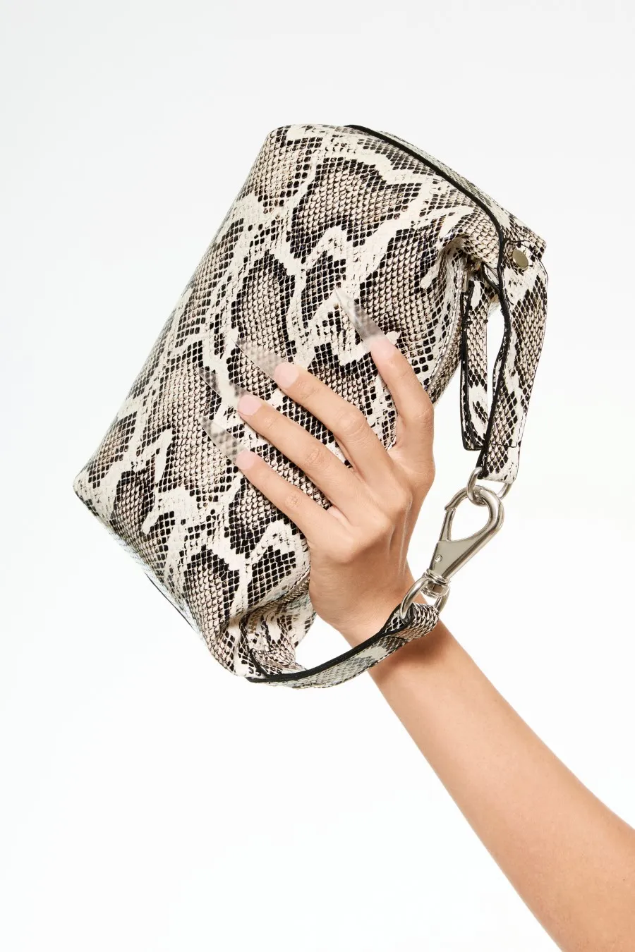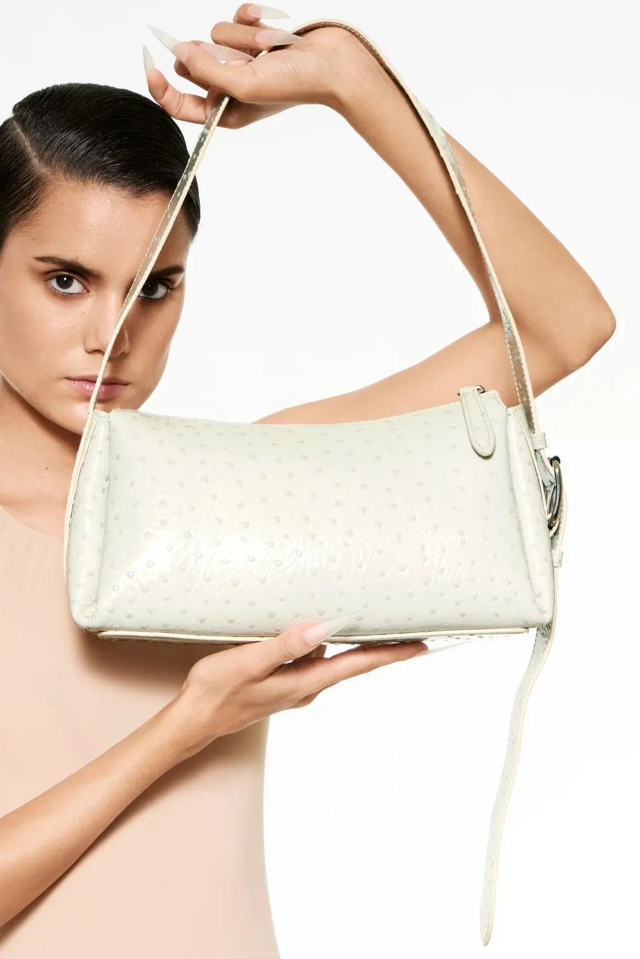 bAGL: Two multifunctional bag styles complement the shoes, rendered in sparkling silver leather, light mint ostrich-printed leather, or black-and-white python print leather.