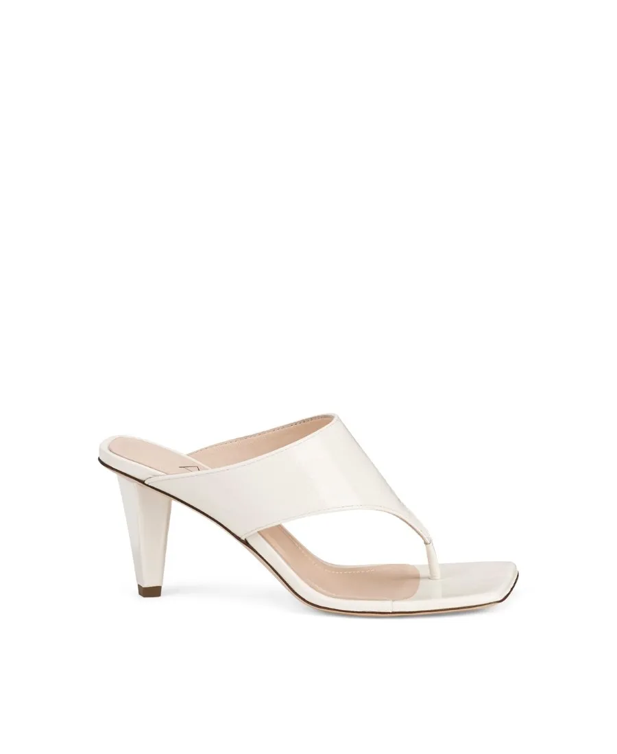Architectural Shapes, Curves and Angles: Sophisticated, delightfully unconventional volumes and forms play a central role. A thong sandal with a sharply squared toe meets a sculptural 7 cm cone leather-covered heel; mules and T-bar ballet shoes feature soft asymmetrical curves on micro-heels. Pointed-toe ballet shoes in neon-coloured ostrich leather bring a striking accent, while a must-have chunky sandal maximises both impact and comfort, crafted on a fully leather-wrapped flatform, yet lightweight.