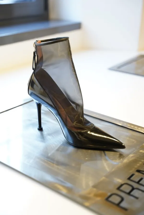 The brand’s showroom becomes an immersive space for the occasion: the shoes seem to be suspended in a poetic composition, while looms, vertical ropes and plays of light create a vibrant and contemplative atmosphere. The collection thus reveals itself as part of a refined and constantly transforming visual score, designed to surprise and capture the eye.